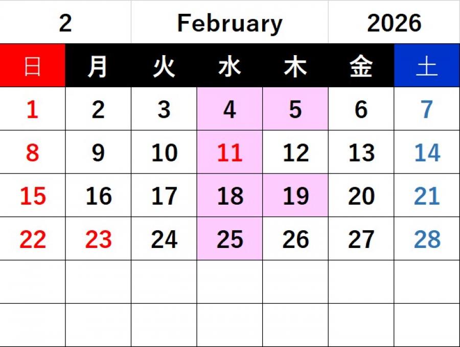 2月11日(水)祝日(建国記念日)は店休日となります。ご容赦ください。